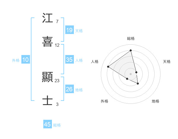 江喜 顯士さんの総格は45画の4点!