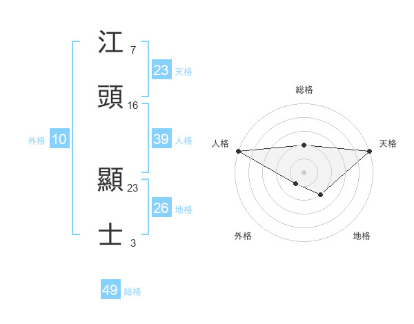 江頭 顯士さんを姓名の画数から五運を鑑定
