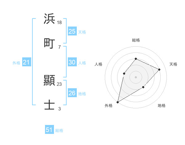 浜町 顯士さんを姓名の画数から五運を鑑定