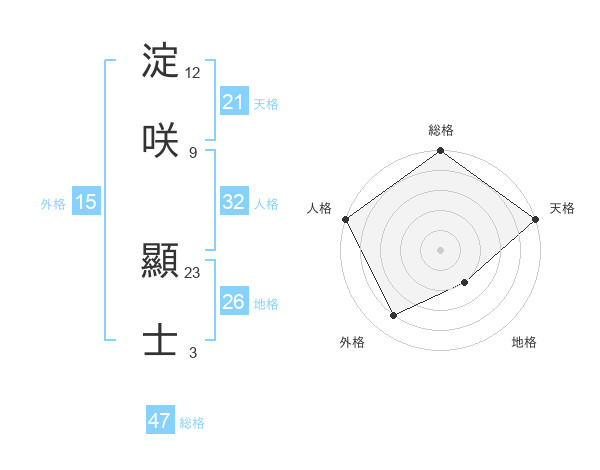 淀咲 顯士さんの総格は47画の5点!