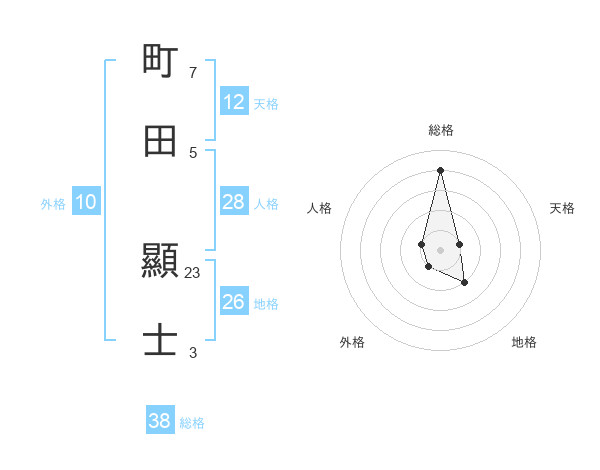 町田 顯士さんの総格は38画の4点!