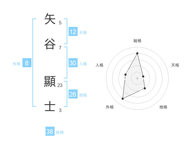 矢谷 顯士さんを姓名の画数から五運を鑑定