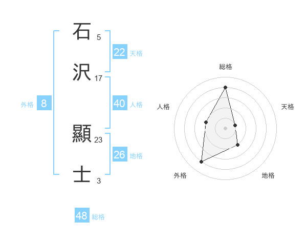 石沢 顯士さんの天格は22画の1点!