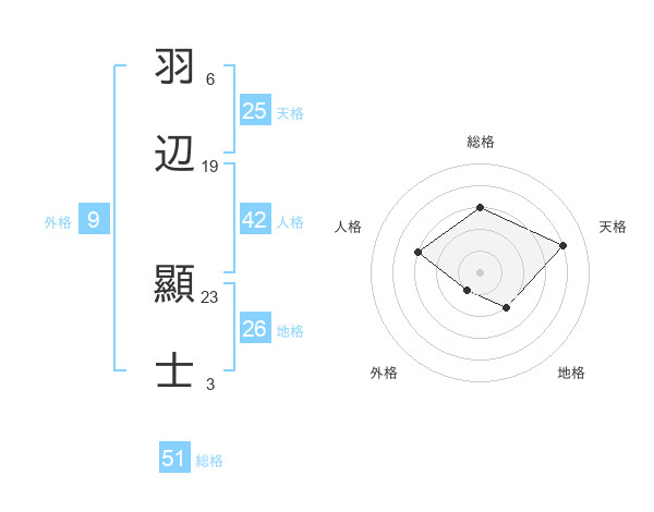 羽辺 顯士さんの総格は51画の3点!