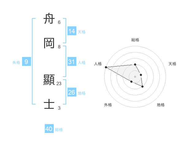 舟岡 顯士さんを姓名の画数から五運を鑑定