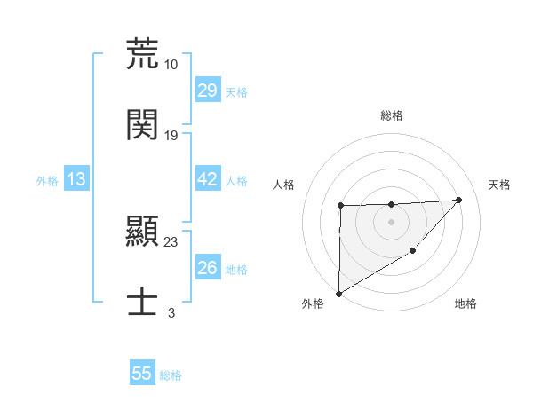 荒関 顯士さんの総格は55画の1点!