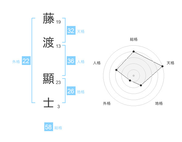 藤渡 顯士さんを姓名の画数から五運を鑑定