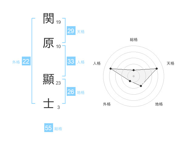 関原 顯士さんの総格は55画の1点!