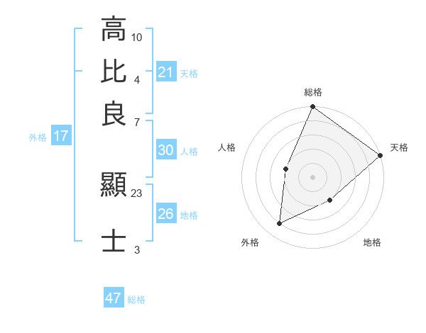 高比良 顯士さんを姓名の画数から五運を鑑定