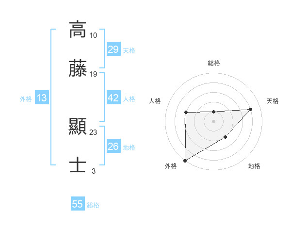 高藤 顯士さんを姓名の画数から五運を鑑定