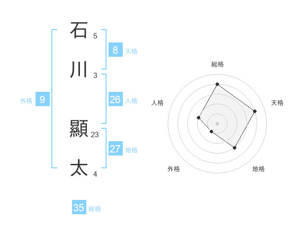石川 顯太さんの総格は35画の4点!
