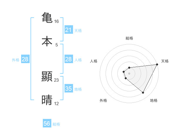 亀本 顯晴さんの総格は56画の1点!