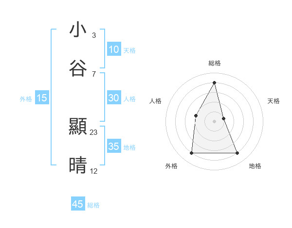 小谷 顯晴さんの総格は45画の4点!