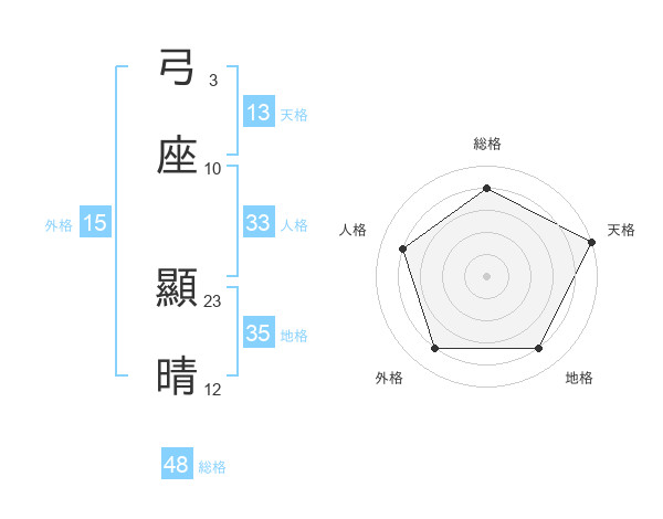 弓座 顯晴さんの天格は13画の5点!