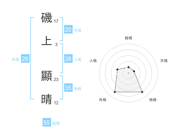 磯上 顯晴さんの天格は20画の1点!