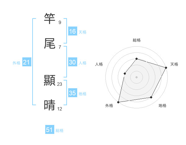 竿尾 顯晴さんの総格は51画の3点!