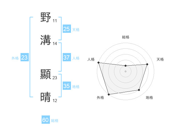 野溝 顯晴さんを姓名の画数から五運を鑑定