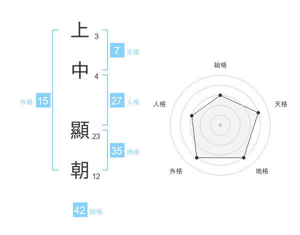 上中 顯朝さんを姓名の画数から五運を鑑定