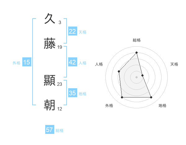 久藤 顯朝さんを姓名の画数から五運を鑑定