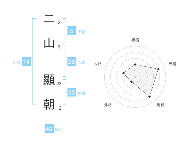 二山 顯朝さんを姓名の画数から五運を鑑定