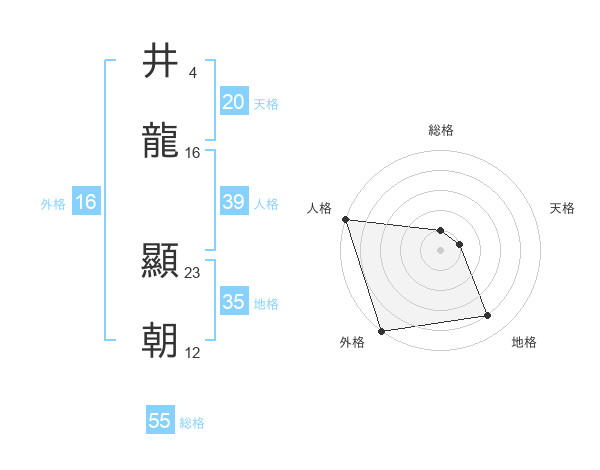 井龍 顯朝さんの総格は55画の1点!