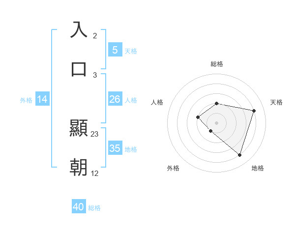 入口 顯朝さんを姓名の画数から五運を鑑定