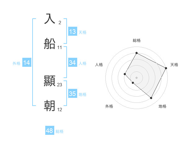 入船 顯朝さんの総格は48画の4点!