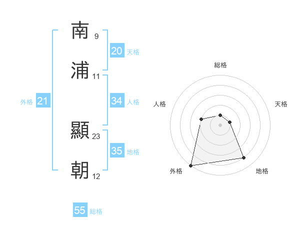 南浦 顯朝さんの外格は21画の5点!