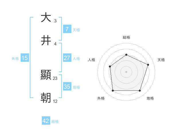 大井 顯朝さんを姓名の画数から五運を鑑定