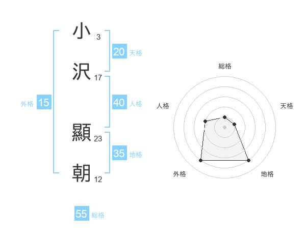 小沢 顯朝さんの天格は20画の1点!