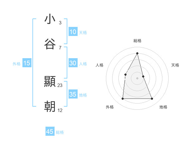小谷 顯朝さんの総格は45画の4点!