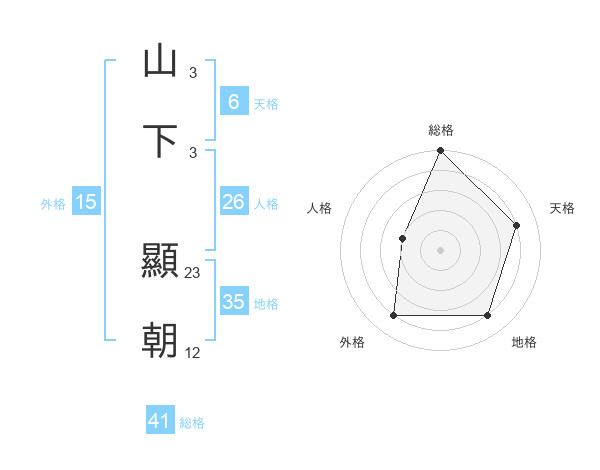 山下 顯朝さんを姓名の画数から五運を鑑定