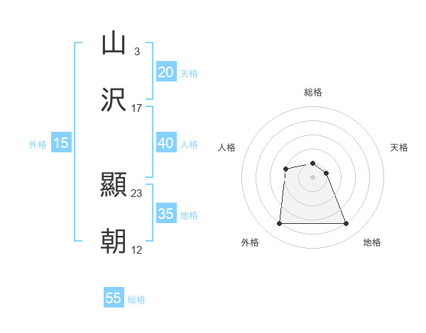 山沢 顯朝さんを姓名の画数から五運を鑑定