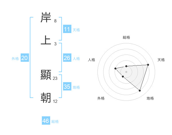 岸上 顯朝さんを姓名の画数から五運を鑑定