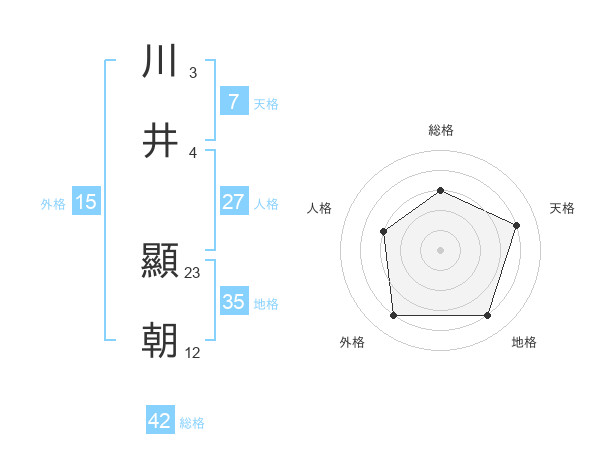 川井 顯朝さんを姓名の画数から五運を鑑定