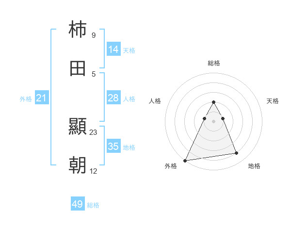 柿田 顯朝さんを姓名の画数から五運を鑑定