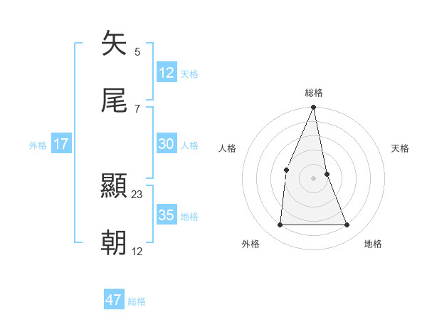 矢尾 顯朝さんを姓名の画数から五運を鑑定