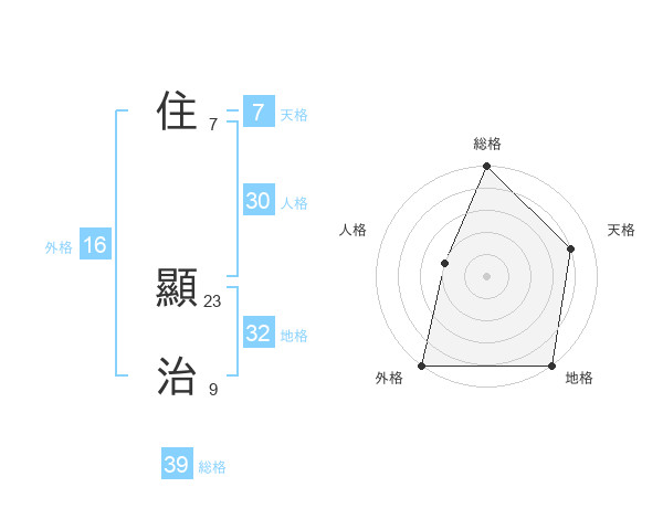 住 顯治さんの総格は39画の5点!