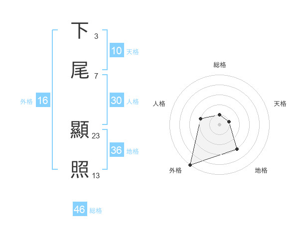 下尾 顯照さんの総格は46画の1点!