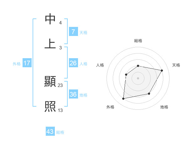 中上 顯照さんの天格は7画の4点!