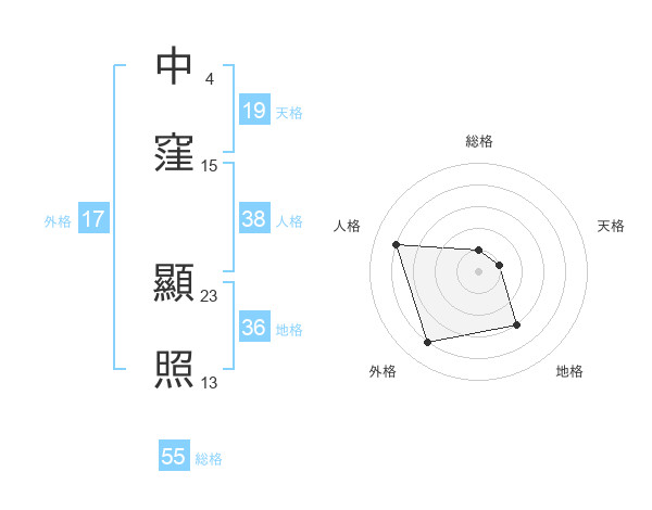 中窪 顯照さんの総格は55画の1点!