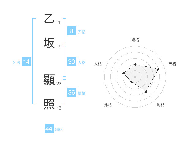 乙坂 顯照さんを姓名の画数から五運を鑑定