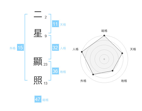 二星 顯照さんの総格は47画の5点!