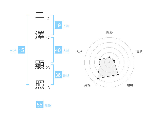 二澤 顯照さんの天格は19画の1点!
