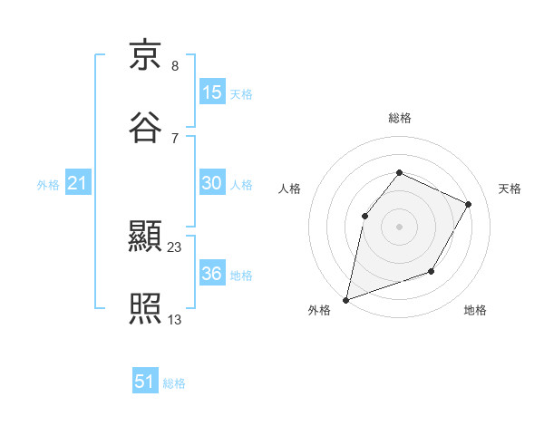 京谷 顯照さんの総格は51画の3点!