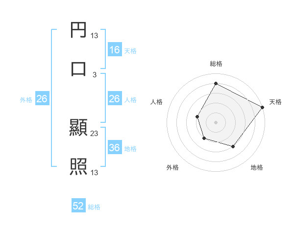 円口 顯照さんの総格は52画の4点!