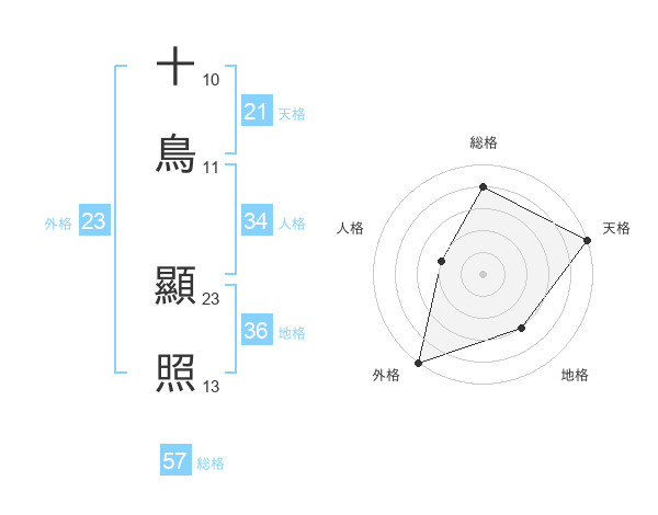 十鳥 顯照さんを姓名の画数から五運を鑑定