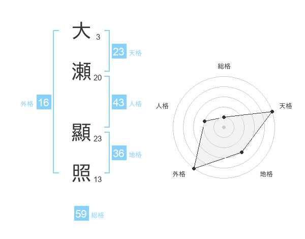 大瀬 顯照さんの天格は23画の5点!