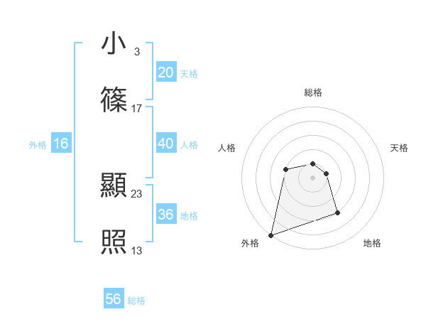 小篠 顯照さんを姓名の画数から五運を鑑定
