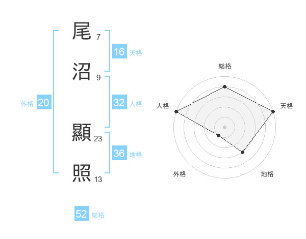 尾沼 顯照さんの総格は52画の4点!